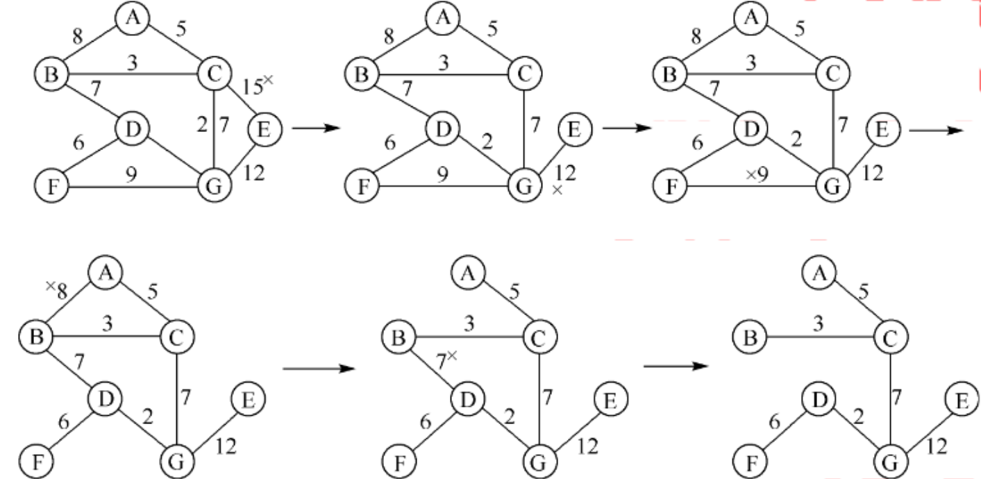 (10 分)下面有一种称为“破圈法”的求解最小生成树的方法:所谓“破圈法”就是“任取一圈,去掉圈上权最大的边”,反复执行这一步骤,直到没有圈为止。