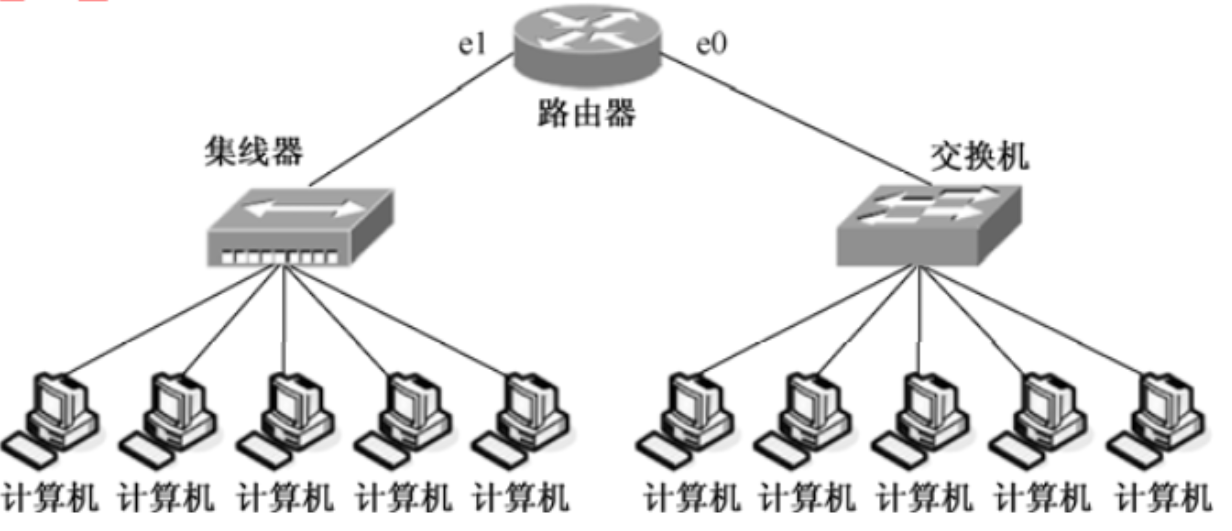在下图的网络配置中,总共有( )个广播域、( )个冲突域。