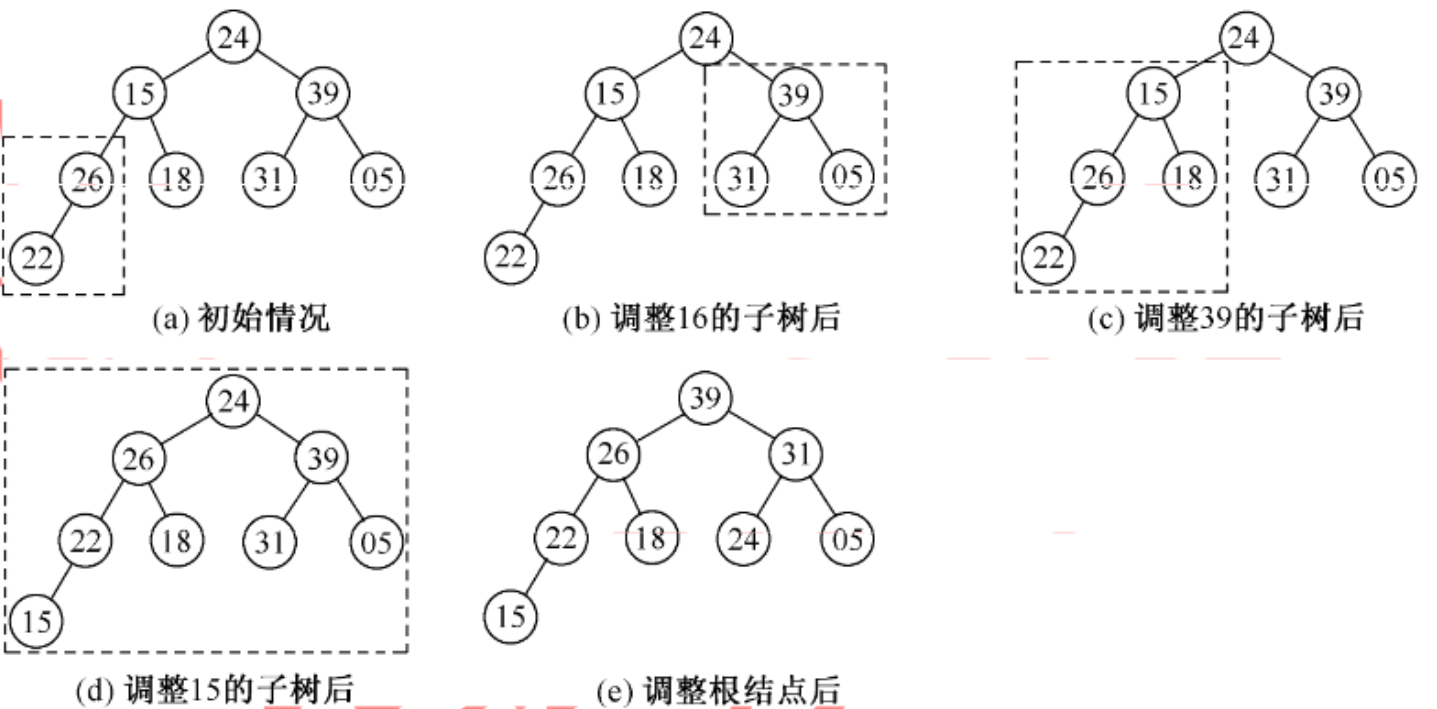 (3)将给定的 K 调整成一个堆顶元素取最大值的堆(即大根堆)。