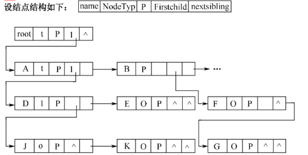 (2) 请设计合理的链式存储结构,以保存图 1 中的文件目录信息。要求给出链式存储结构的数据类型定义,并画出对应图 1 中根目录部分到目录 A、B 及其子目录和文件的链式存储结构示意图。